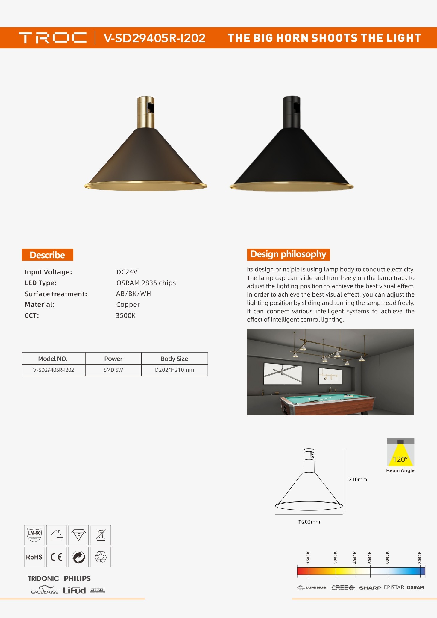 Beam angle: 120°