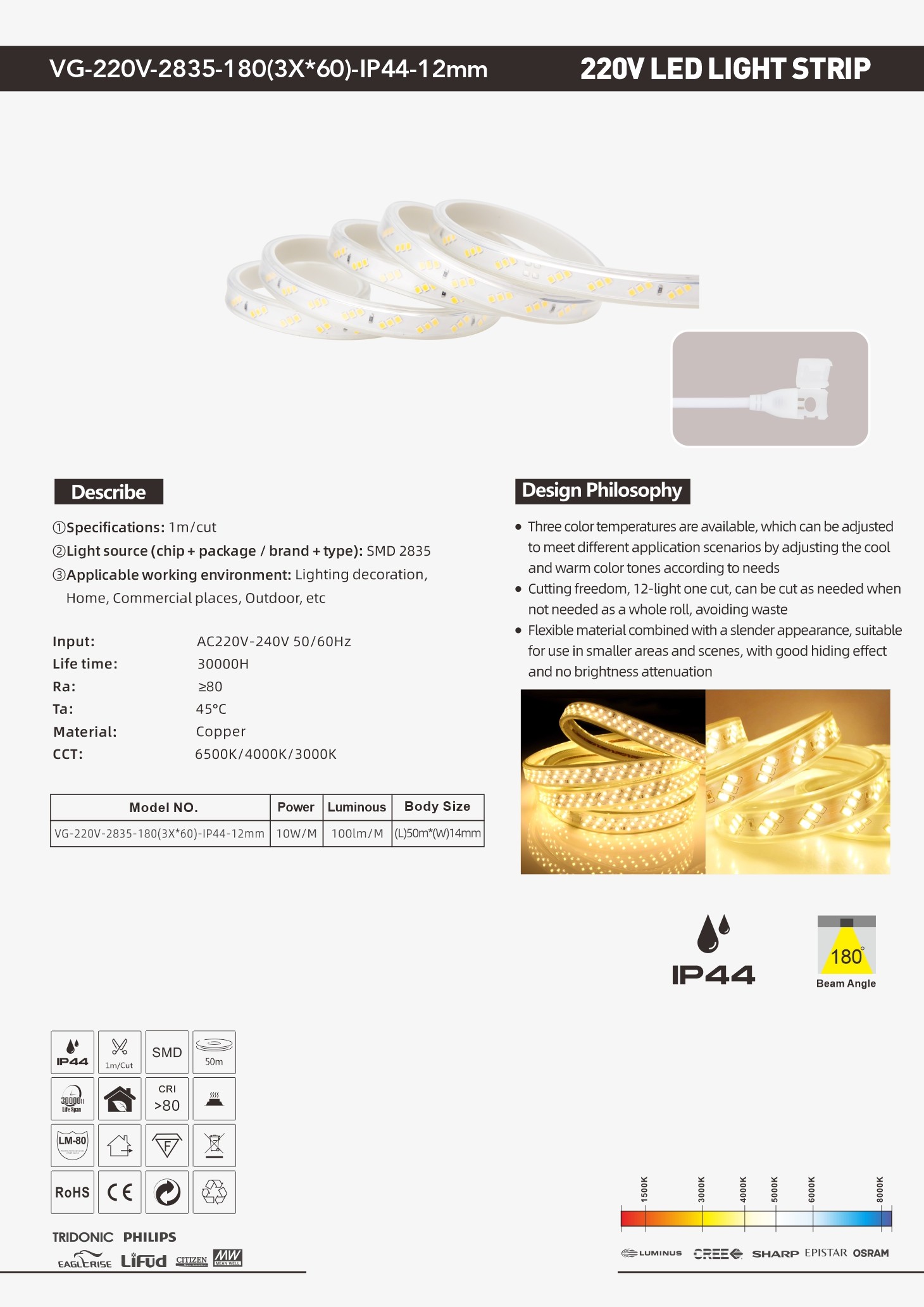 Model NO.: VG-220V-2835-180(3X*60)-IP44-12mm