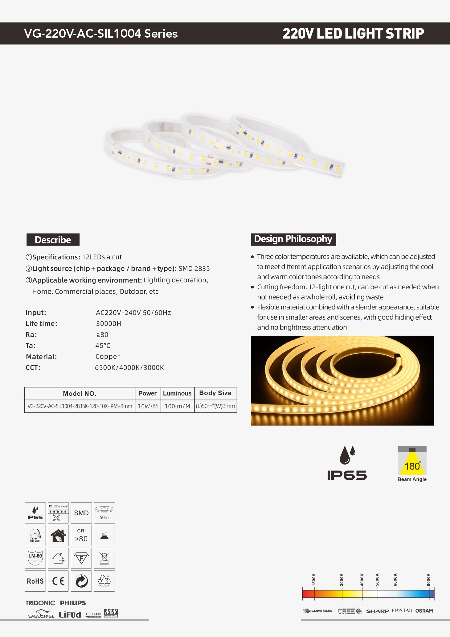 Model NO.: VG-220V-AC-SIL1004-2835K-120-10X-IP65-8mm