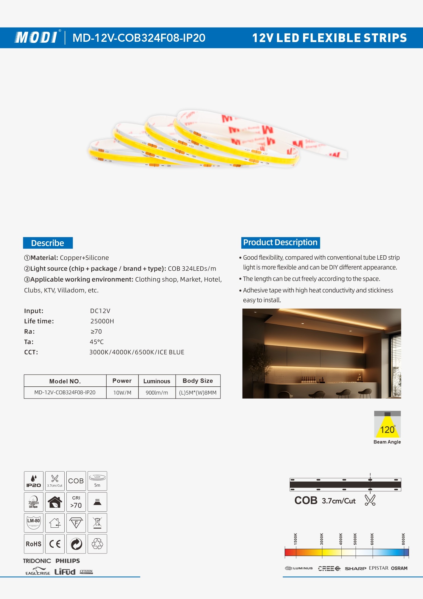 Model NO.: MD-12V-COB-324F08-IP20