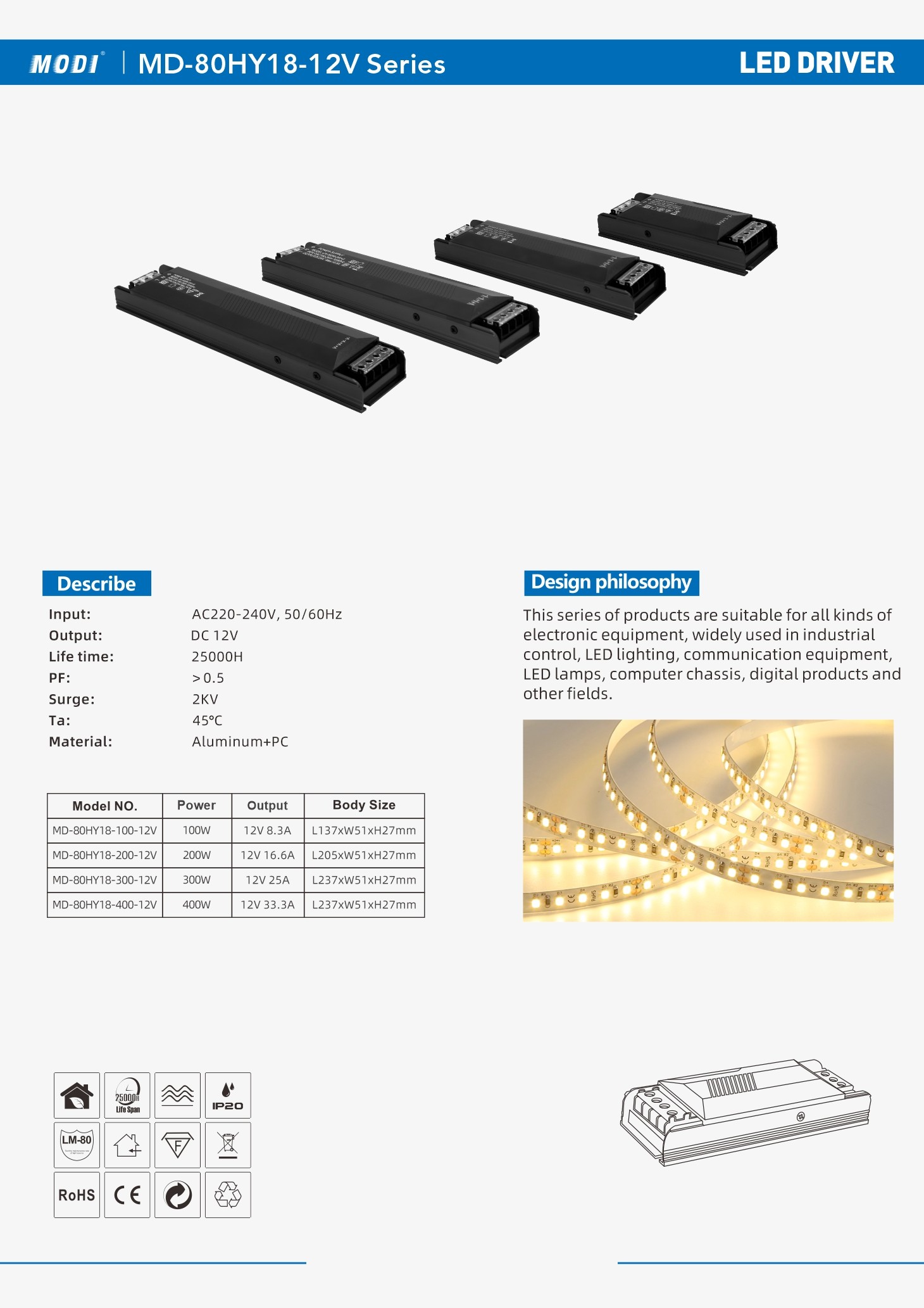 Model NO.: MD-80HY18-100-12V